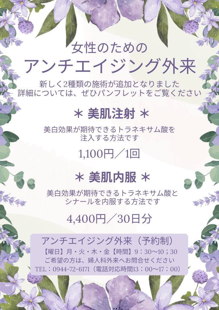 【施術追加】女性のためのアンチエイジング外来について