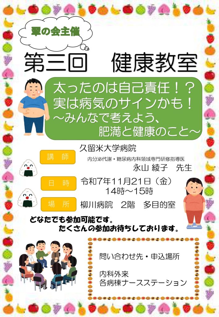 R7年11月21日(金) 第三回 健康教室を開催します!